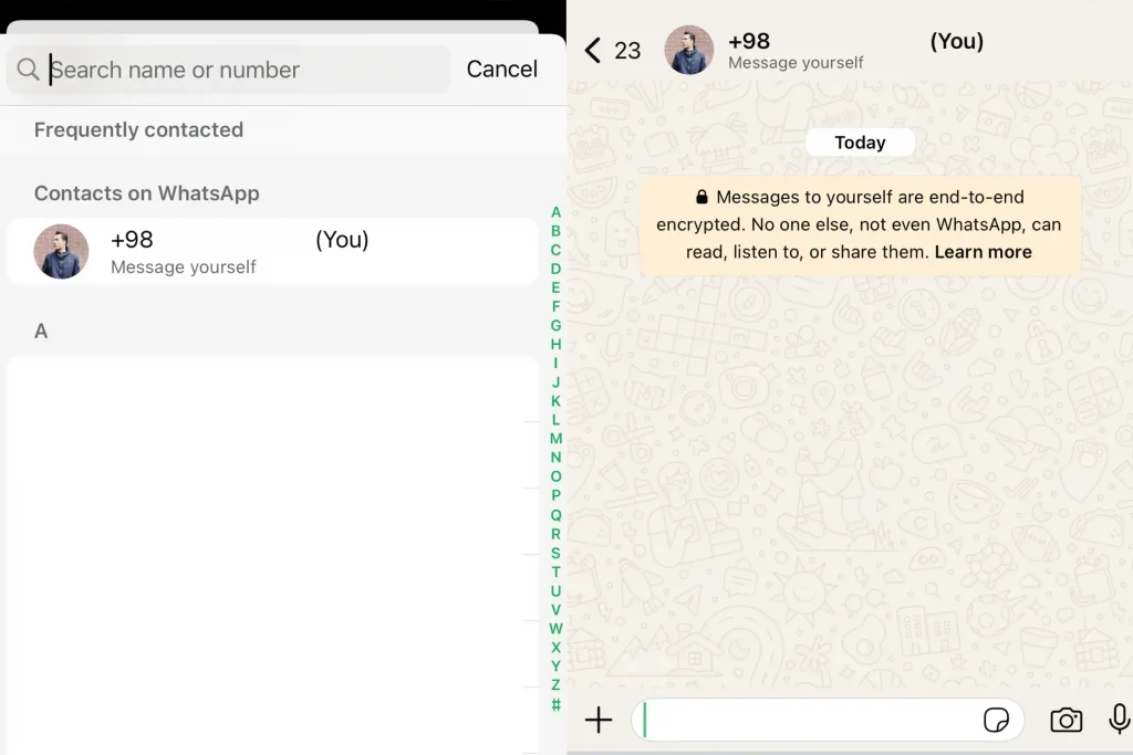آیا میدانستید میتوانید به خودتان پیام بدهید؟ این ویژگی در ترفندهای واتساپ آیفون، مثل یک دفترچه دیجیتال عمل میکند: